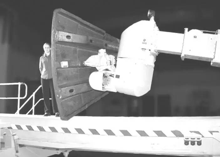 自 20 世紀 60 年代末美國明尼蘇達州的 PaR 公司開始從事大型磨機換襯板機械手的研究至今,世界上許多國家的有色和黑色金屬礦山選礦廠已經實現了磨機換襯板的機械化作業。美國、前蘇聯、芬蘭、澳大利亞等國的研究人員在此過程中取得了大量的成果,申報了多項專利,并己開發生產出了系列產品,以適應各種不同類型和規格的磨機。無論是球磨機、棒磨機,還是自磨機或半自磨機,大多都有相適應的不同類型的換襯板機械手為其服務。而這些設備也是依磨機類型、筒體直徑和長度、入口直徑的大小、最大的襯板質量以及磨機周圍的環境而專門設計的。在國外,2001 年換襯板機械手可以滿足磨機的最大筒體直徑達 11.6 m,磨機最大長度 12.2 m,抓吊襯板最大質量達 3 636 kg。澳大利亞 RME 公司近期已生產出了抓吊襯板質量達4 545 kg 的磨機換襯板機械手 (見圖 1)。目前,美國 PaR 公司和澳大利亞 RME 公司是世界上比較出名的換襯機械手生產公司,生產的換襯板機械手均已形成系列,從抓吊襯板質量 1 000~5 000 kg 各種型號均可生產。隨著換襯板機械化的發展,適應中小型磨機的換襯板設備也日趨完善并得到推廣。美國 PaR 公司在 20 世紀 80 年代研制出的 MLH-130 型換襯板機械手可適用于最小筒體直徑 2.75 m、入口直徑 0.61 m 的磨機,而且,這類機械手的換襯板效率更高。