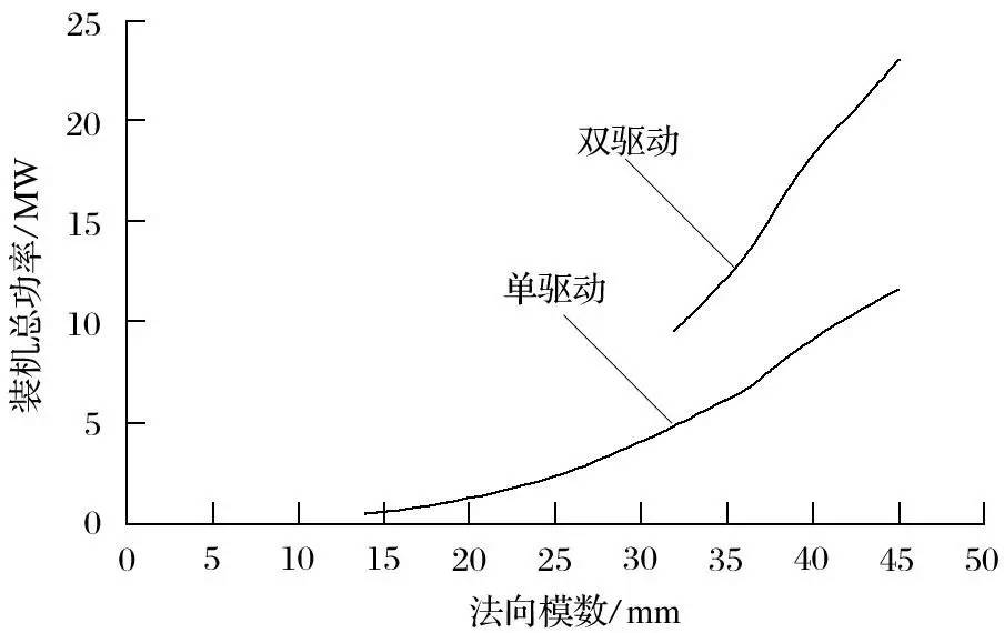 圖6大齒輪法向模數和裝機功率