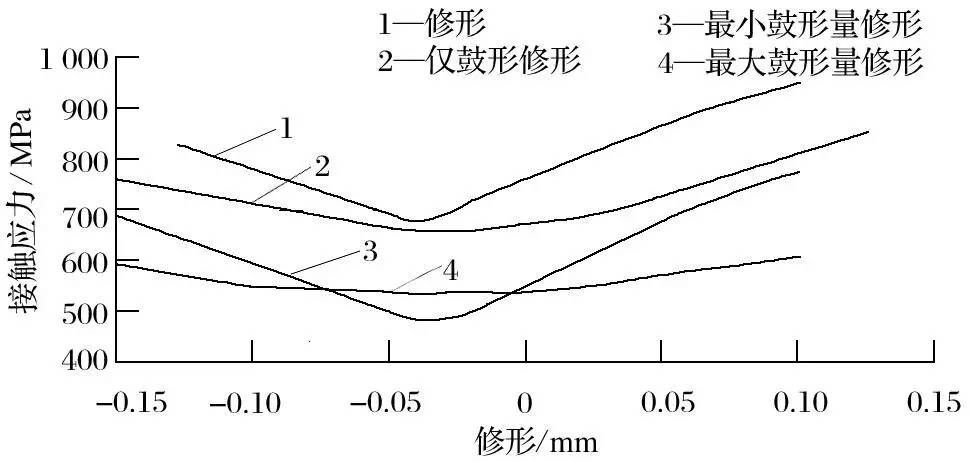 圖13 修形-接觸應力的變化