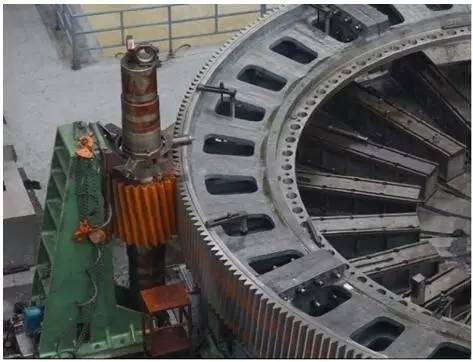 中信重工擴大了制造大型礦用磨機的生產能力,尤其是大型磨機齒輪的制造能力,目前擁有 8~10 條平行生產線。單件澆鑄能力可達 600 t,18 500 t 油壓機已于 2010 年正式投產,有能力鍛造 400 t 單件鑄件。擁有 2 臺 Φ16 m CNC 滾齒機,能夠制造直徑 16 m 以下,模數可達 45 的大型齒輪,為大型齒輪的制造提供了有力保障,為大型礦用磨機齒輪驅動的選擇奠定了基礎。