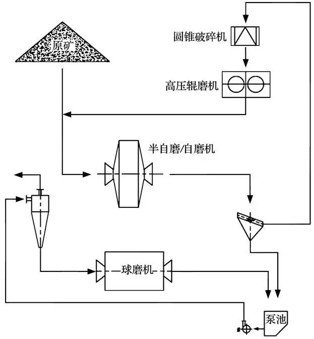 (a)輥壓產品返回半自磨 自磨機工藝